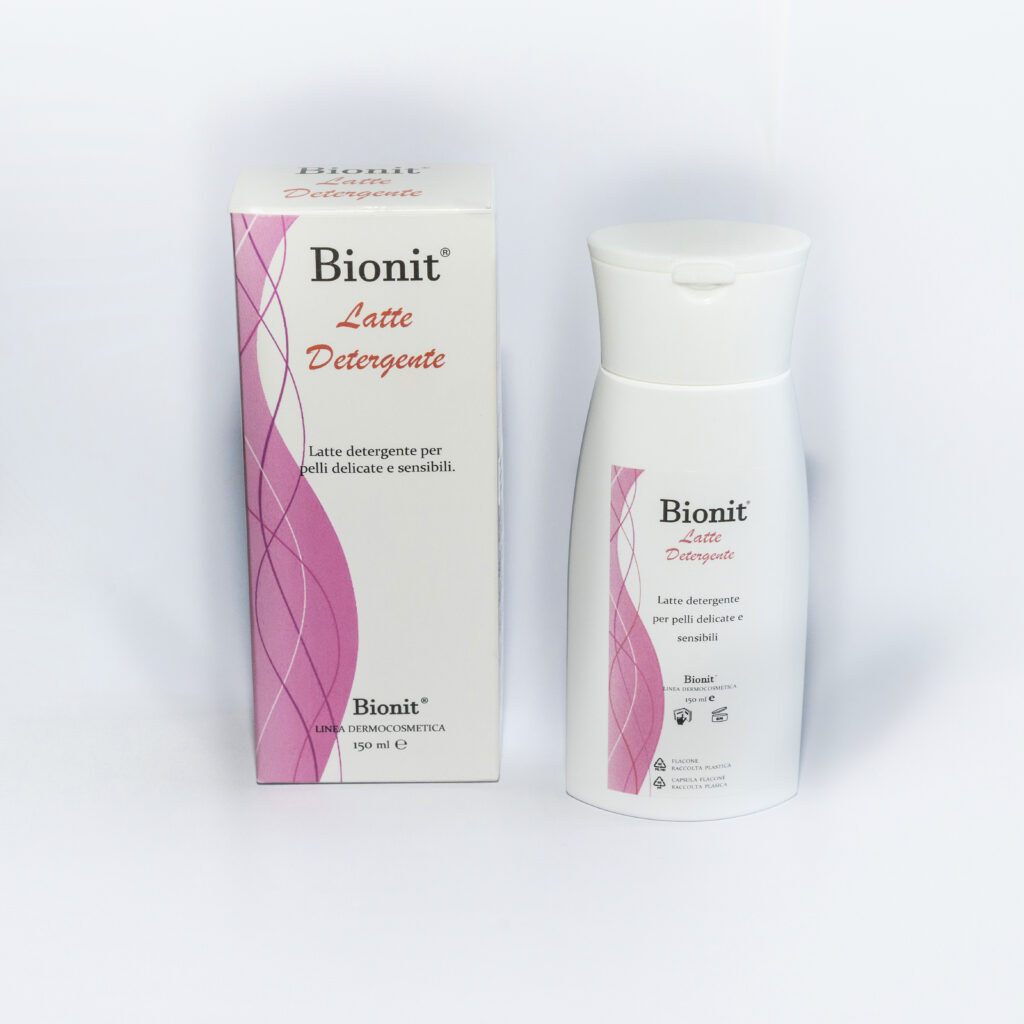 Bionit Latte detergente è indicato per la detersione del viso nelle pelli delicate e ipersensibili, anche affette da Rosacea, Acne e Dermatiti. Ha una azione idratante, lenitiva e rigenerante grazie alla sua speciale formulazione con estratti di Aloe e Calendula, Acido Ialuronico e Vitamina E. Deterge senza sapone, lasciando la pelle elastica, fresca e morbida. NON sono presenti parabeni, petrolati, PEG e siliconi.